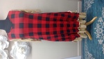 > ** Plus Ladies Red/Plaid/Gold Midi Dress with Gold Ruffle