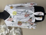 ** Ladies Tie Front Floral White Top