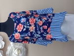> ** Ladies Floral Print 3/4 Top with Stripped Bell Sleeve and Bottom